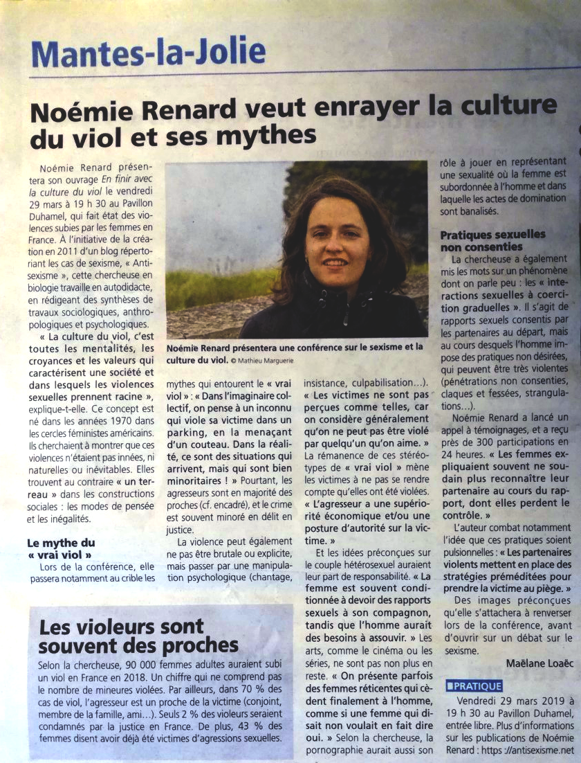 27/03/2019, Le Courrier de Mantes, Noémie Renard veut enrayer la culture du viol et ses mythes